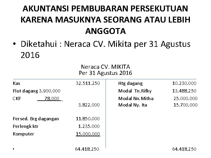 Contoh soal pendirian firma oleh anggota yang belum memiliki usaha menjadi bagi dari perhitungan akuntansi keuangan lanjutan 1.