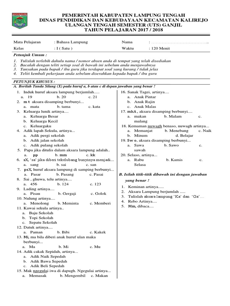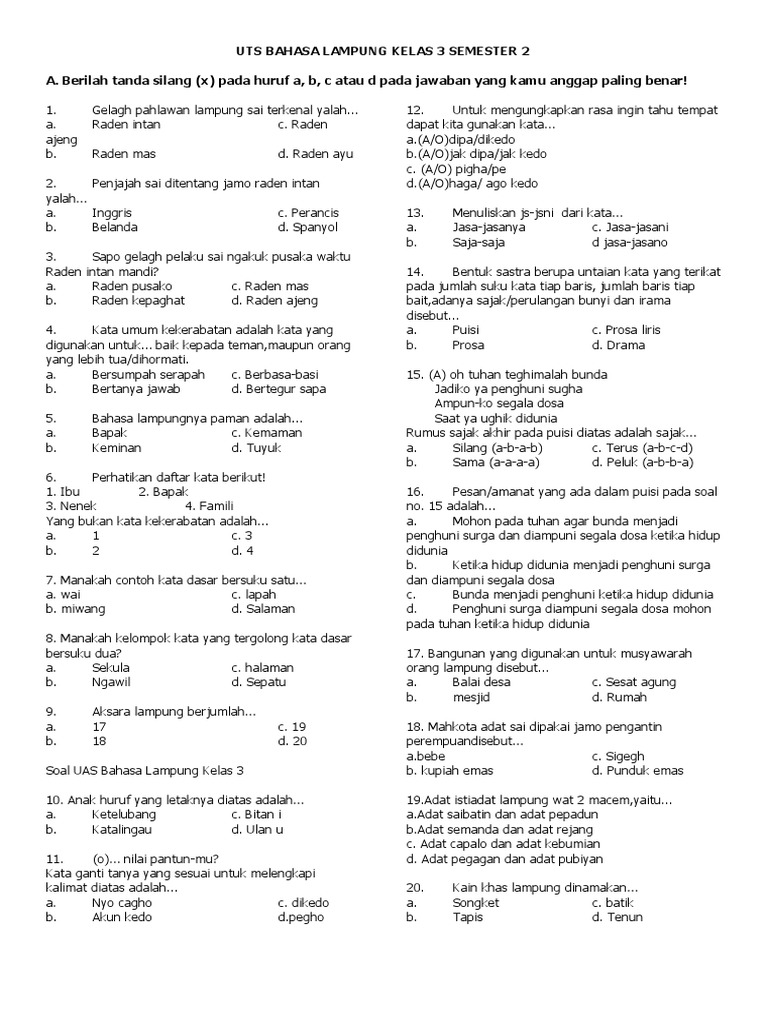 Soal Bahasa Lampung Kelas 8 Semester 1 Dan Kunci Jawaban Guru Galeri from 3.bp.blogspot.com