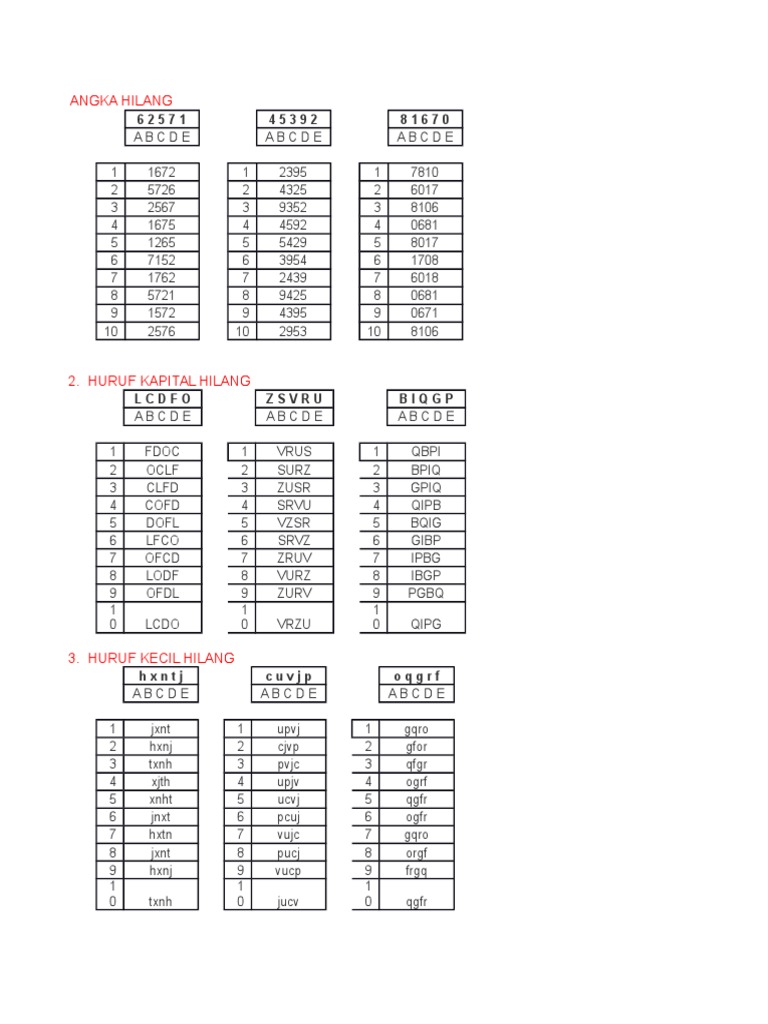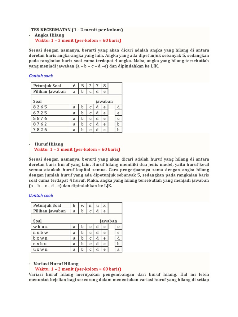Download soal huruf hilang pdf. Click one of them for view details. Oleh karena itu pilih jawaban e. 20201203 download soal huruf hilang. 0 ratings0% found this document useful (0 votes). Convert (epub, mobi) sent to email sent to kindle report. Soal psikologi kecermatan simbol hilang 2014 bimbel polri. Simulasi cat tes kecermatan sikap kerja psikologi polri huruf hilang.
