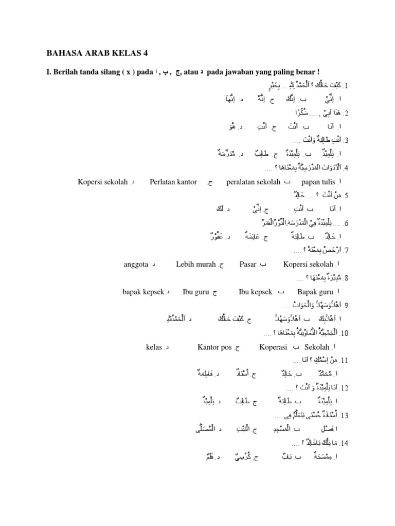 Inggris ppkn sejarah bahasa lain ekonomi ips akuntansi biologi b. Soal soal bahasa arab mts kelas 9 berkas file guru kunci jawaban bahasa arab kelas 9 mts, soal soal bahasa arab mts kelas 9 berikut ini adalah soal soal bahasa arab mts kelas 9 yang bisa anda download secara gratis di website kami rpp bahasa indonesia kelas 9 smp mts klik download. 0 response to soal uas bahasa arab kelas 4 mi semester 1. Soal uts bahasa indonesia kelas 11 semester 2. 1 introduction & greeting semester 1 pembelajaran bahasa arab untuk kelas 3 bab 2 ~anggota wudhu~ video pembelajaran kelas 3 mata pelajaran bahasa arab pelajaran 1 nama nama pelajaran materi bahasa arab.