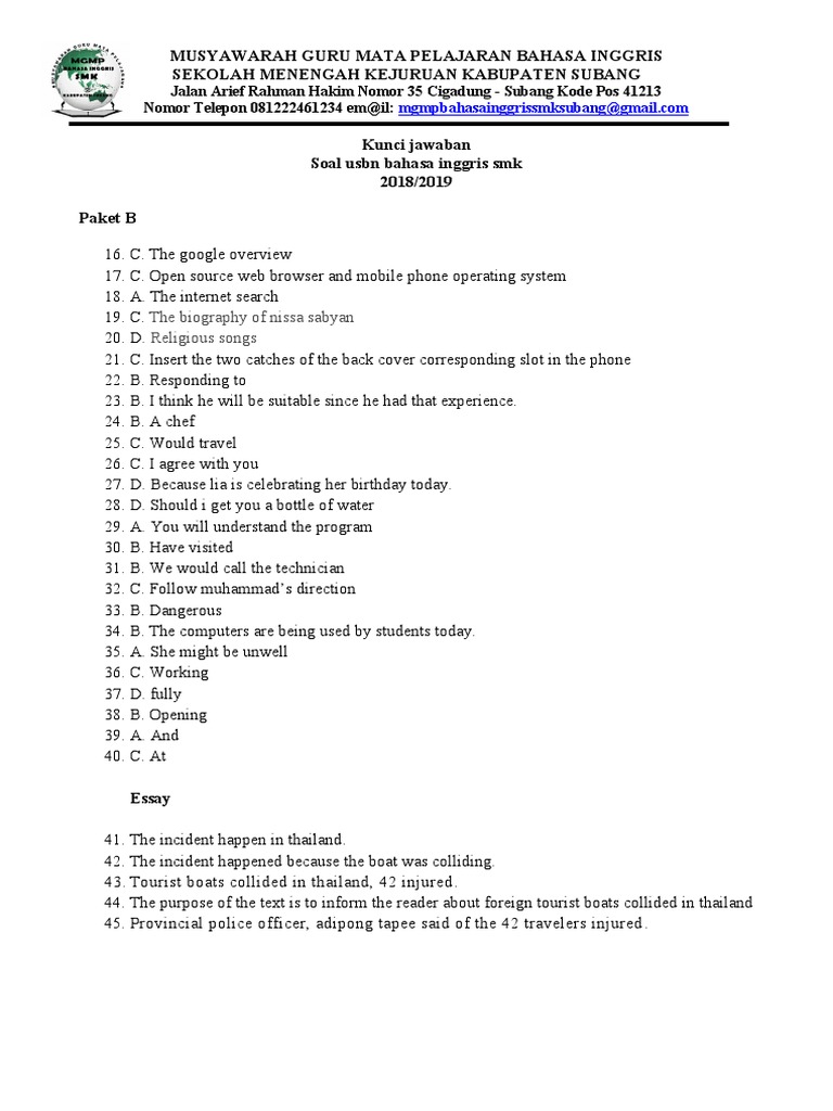 To amuse readers kunci jawaban ujian sekolan bahasa inggris smp tahun pelajaran 2019/2020 kurikulum 2013 silakan. I had never expected to get (b) the job. What is the purpose of this letter? To entertain readers with the knowledge d. 40 contoh soal pg bahasa inggris kelas 12 lengkap dengan jawaban.