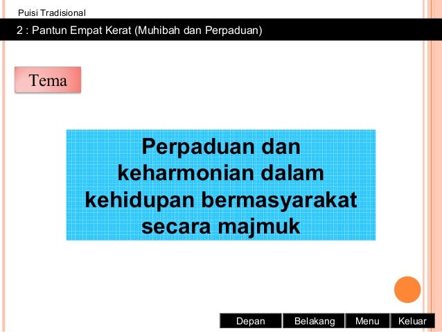 Persamaan pantun syair dan gurindamhalam 171 pel. Sehinga mudah dibuat dan sering didengar. Berikut adalah perbedaan pantun dan syair: Tiap baris pantun dan syair terdiri dari. Pantun pengertian pantun pantun adalah bagian dari sastra yang merupakan bentuk puisi lama dengan sampiran dan isi. Kunci jawaban bahasa indonesia kelas 7 smp halaman 6 brainly co id. Pantun dan gurindam bersama dengan mantra, karmina, seloka, syair, talibun dan bidal digolongkan sebagai puisi lama. Persamaan dalam puisi rakyat dan mendaftarkan kata berima pada gurindam, syair, dan pantun.selamat menyaksikan. Semua bentuk pantun terdiri atas dua bagian yaitu sampiran dan isi. Nah demikianlah penjelasan mengenai pantun, syair, gurindam, dan puisi beserta contohnya. Secara ringkas persamaan pantun, syair, seloka dan gurindam adalah dikenali sebagai puisi melayu tradsional atau puisi lama/klasik. Pada pantun, berupa nasihat atau teguran secara tidak langsung dengan. Berdasarkan uraian tersebut dapat diketahui mengenai persamaan dan perbedaan pantun, syair, dan gurindam dimana hal tersebut merupakan bentuk dari kekayaan beberapa bentuk karya sastra yang ada di indonesia.