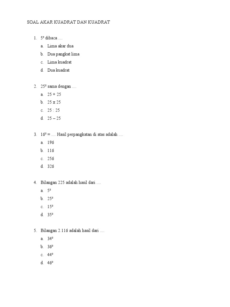 Contoh Soal Akar Kuadrat Sd from rumus.co.id