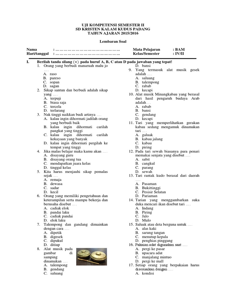Periksa kembali pekerjaanmu sebelum diserahkan pada pengawas. Soal dan kunci jawaban sbk kelas 6 sd semester 2. Kerjakan dulu soal yang kamu anggap mudah. Jawablah soal dibawah ini dengan cara memilih satu jawaban yang paling tepat dan benar! Kunci jawaban soal esai / uraian 1.