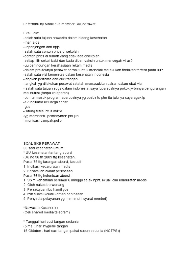 Soal seleksi kompetensi bidang (skb) kesehatan, unduh disini.